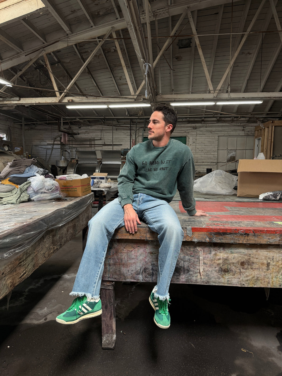 We specialize In a hand dyed aged process that softens, distresses, and fades our merch to have a worn in high-end vintage look & feel.